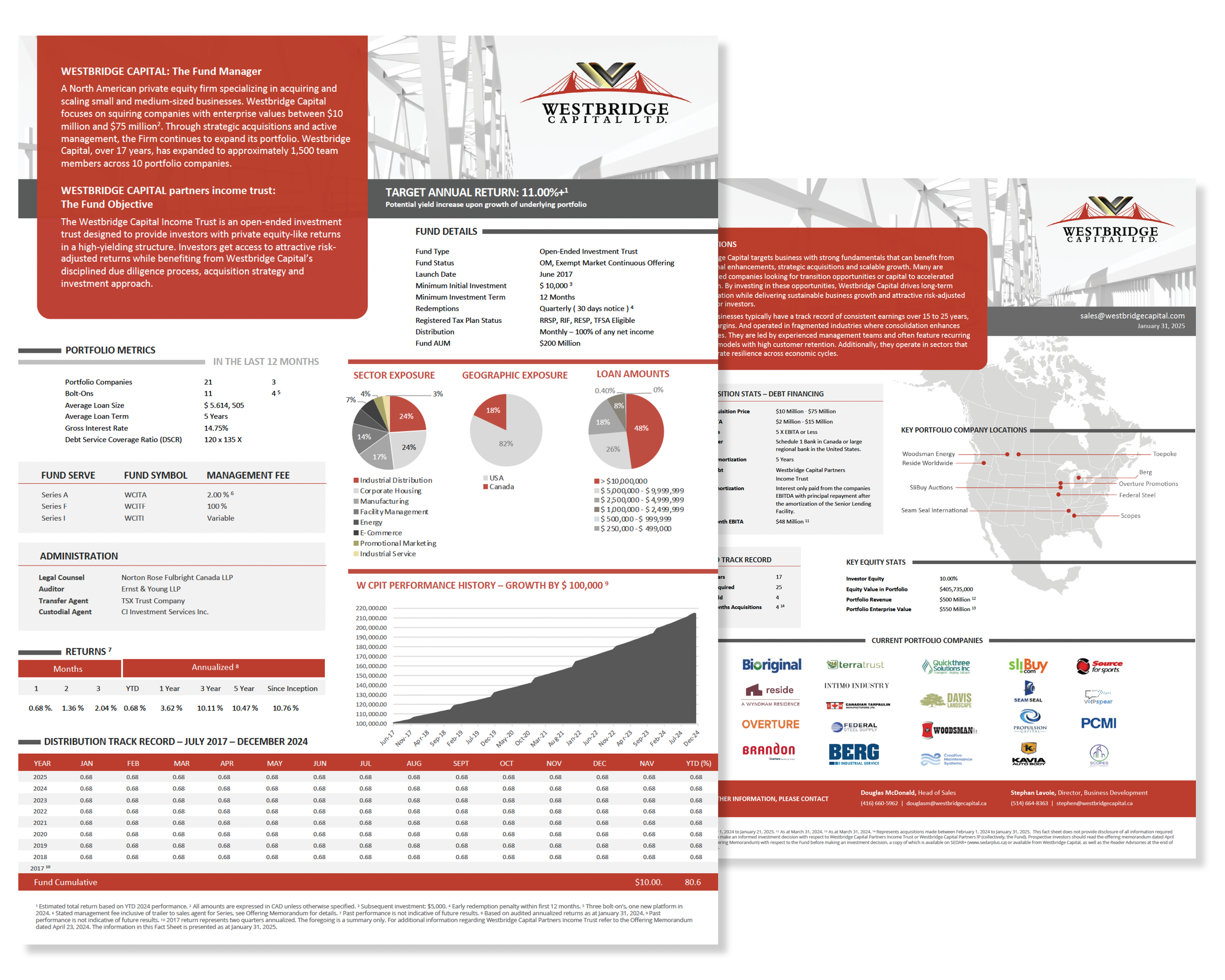 This capital investment firm was looking to redesign several of their marketing materials. They wanted to explore a fresh design aesthetic that kept complex information legible without appearing rigid or heavy. I created templates their team could easily update with new data. To modernize the look, I moved away from their previous use of black and dark imagery, opting for a lighter, more engaging approach that complemented, rather than distracted from, the written content.